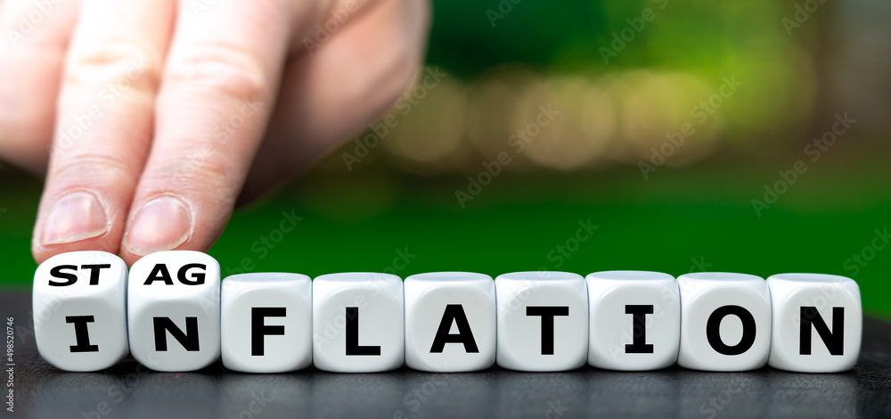 Hand turns dice and changes the word "inflation" to "stagflation".