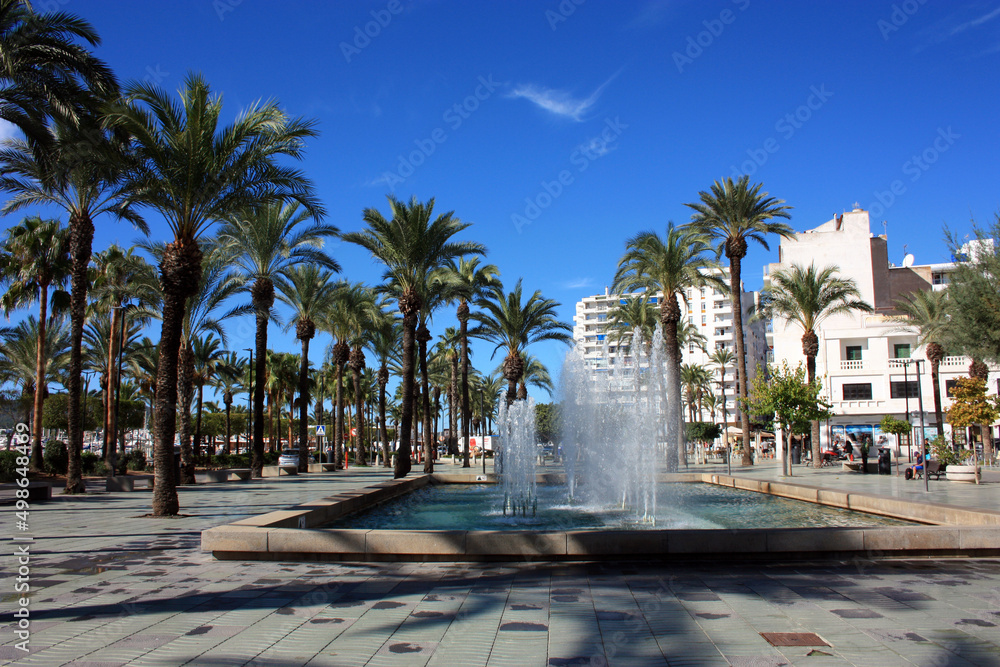tourist walk with fountain in ibiza in the city of san antonio