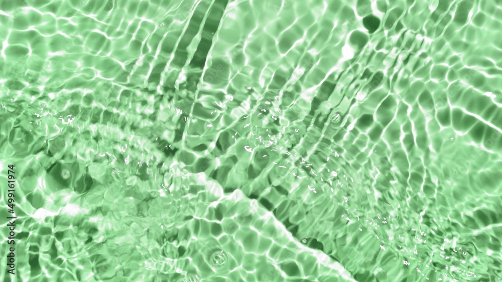 Poured water making splashes and ripples over green background | makeup background, water based moisturizer commercial concept