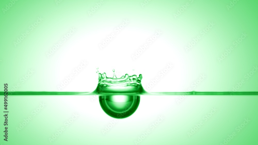 A drop falled in green transparent liquid making crown splash on it's surface | Cosmetics with aloe vera mixing concept