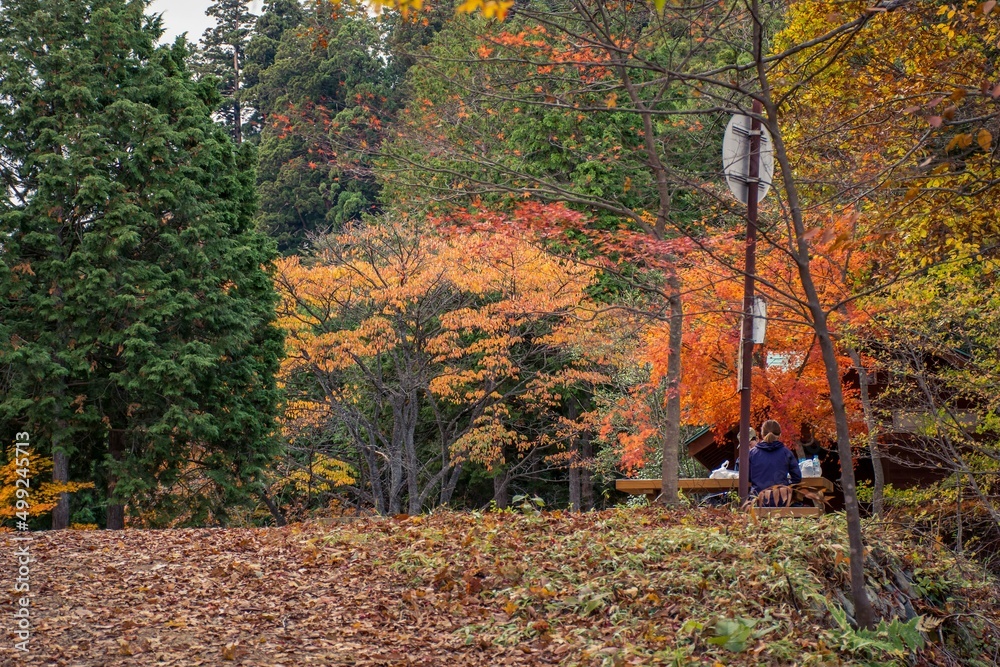 Mitake, Tokyo-Japan, The romatic autumn scenry on the Mitake Mountain, the maple is starting changing its leaf to red color. Many of Japanese come for capming and dating