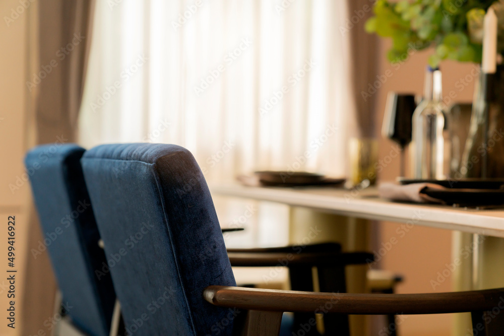 closed up beautiful style dining chair furniture set with dining table and dish sets accessory decorate home interior design concept