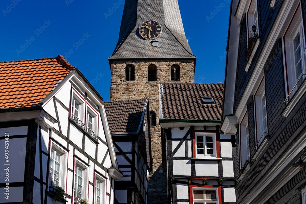 Fachwerkhäuser und Kirche in Hattingen / Deutschland