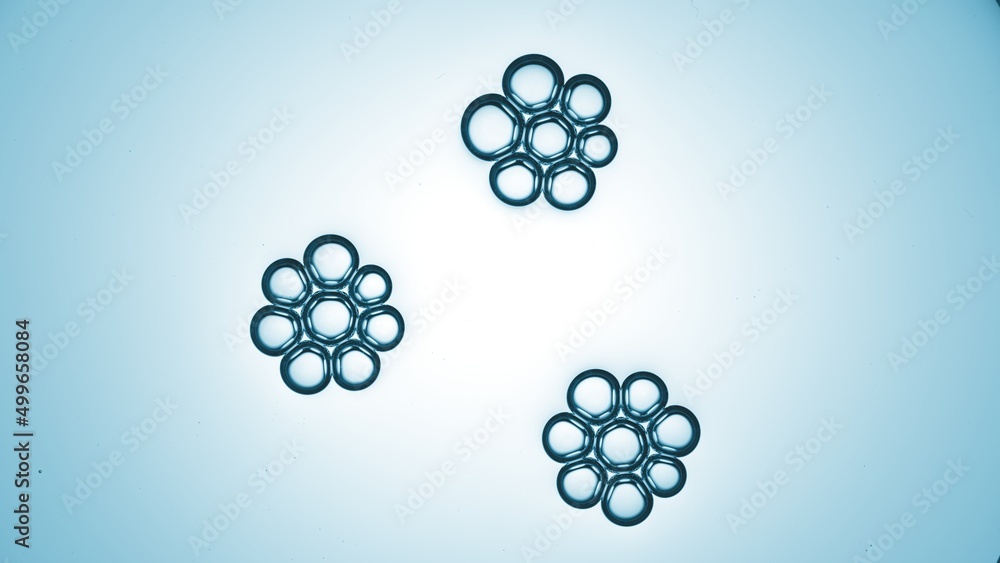 Macro shot of soap bubbles connected to each other forming flower shape | Abstract skin care product ingredients concept