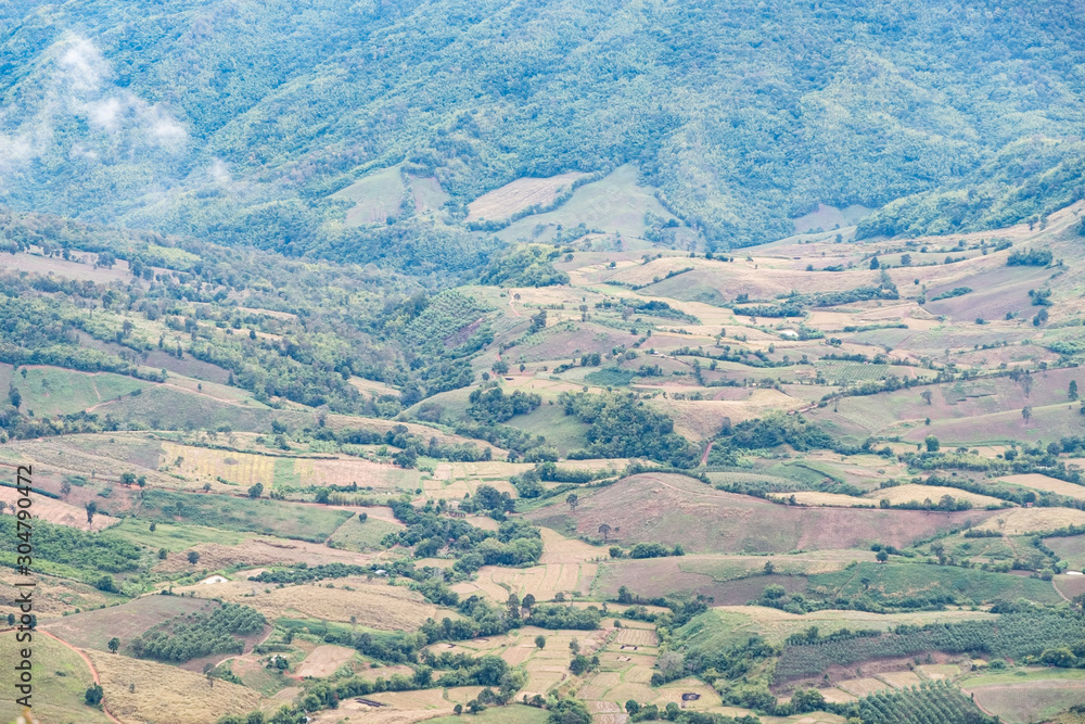 Panorama of mountains in the Ukrainian Carpathians on a summer day.
