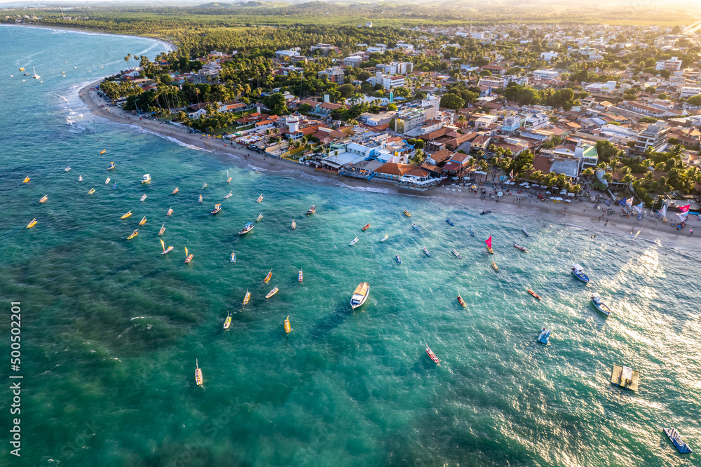 Aerial view of Porto de Galinhas beaches, Pernambuco, Brazil. Natural pools. Fantastic vacation travel. Great beach scene.