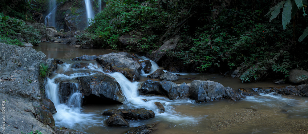 Panoramic beautiful deep forest waterfall in Chiang Mai at Thailand.
