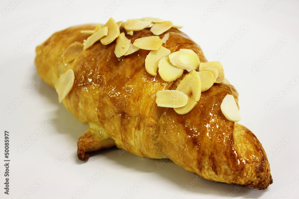 Almond croissants on a white background.