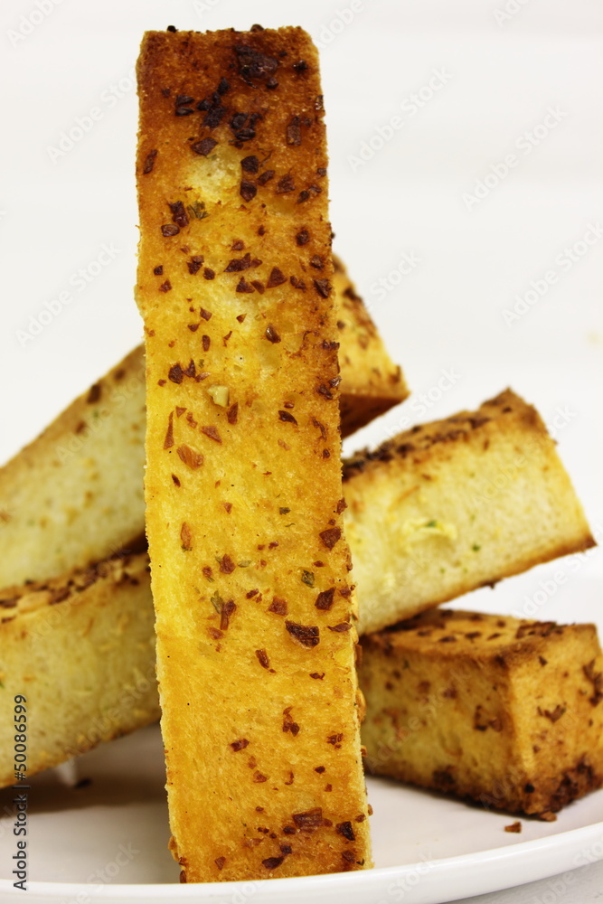 Garlic bread on a white background