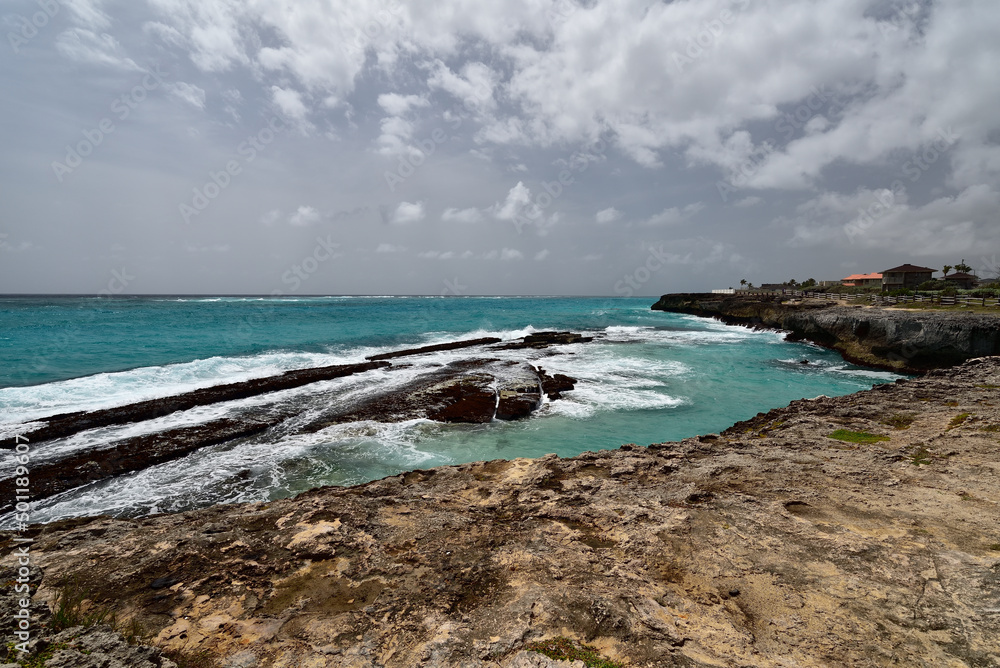 Rocky coastline near the Shark Hole, West coast of island Barbados, Caribbean Islands
