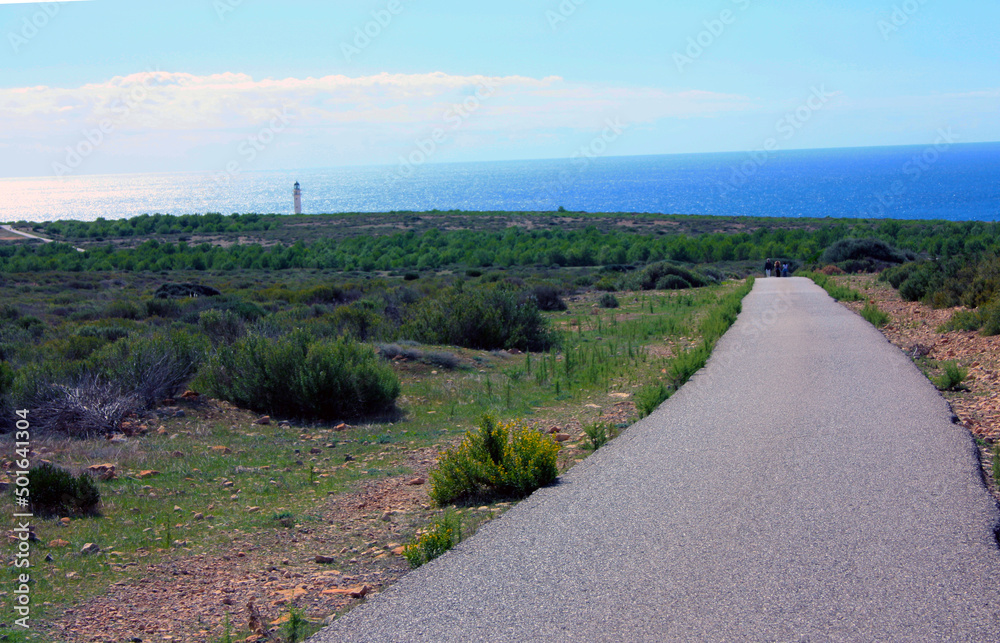 famous road of balearic islands leading to the lighthouse tourist attraction of formentera