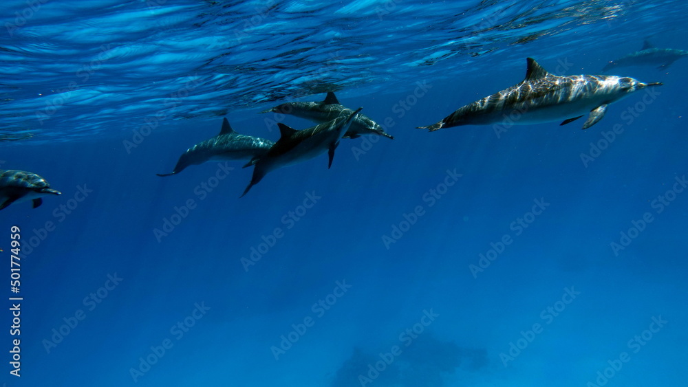 Dolphins. Spinner dolphin. Stenella longirostris is a small dolphin that lives in tropical coastal waters around the world.