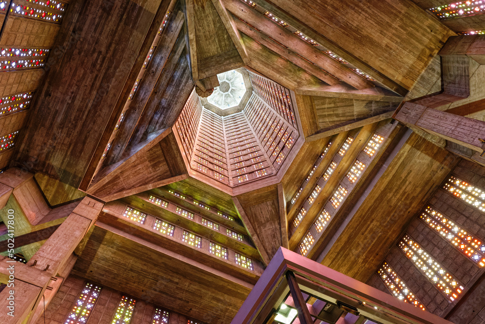 Intérieur de l'église Saint Joseph du Havre dans le département de la Seine Maritime, constuite après les bombardement de septembre 1944