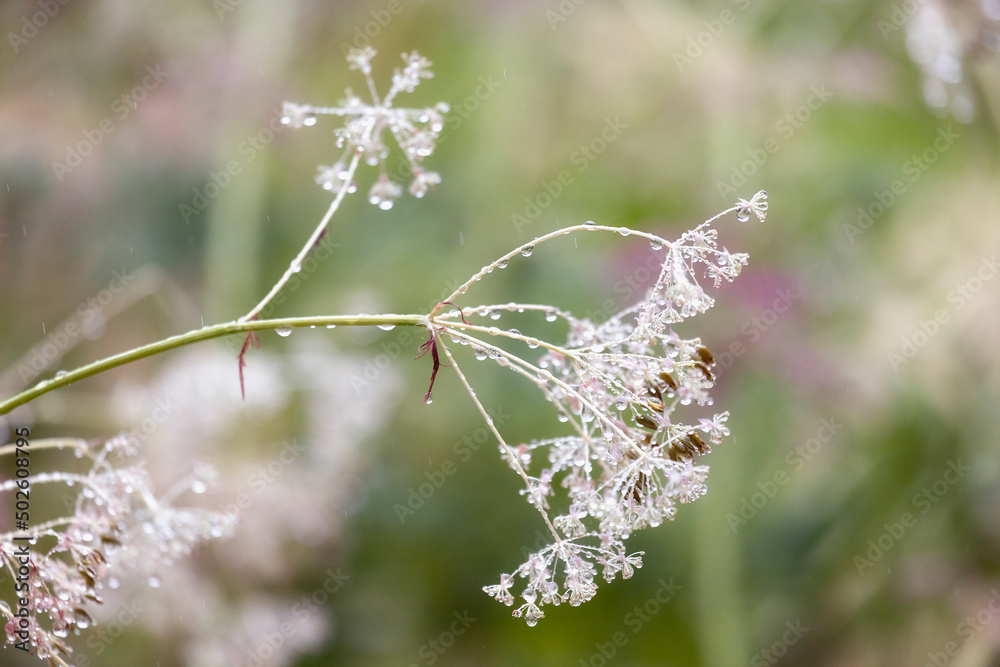 Grass with raindrops on a summer day