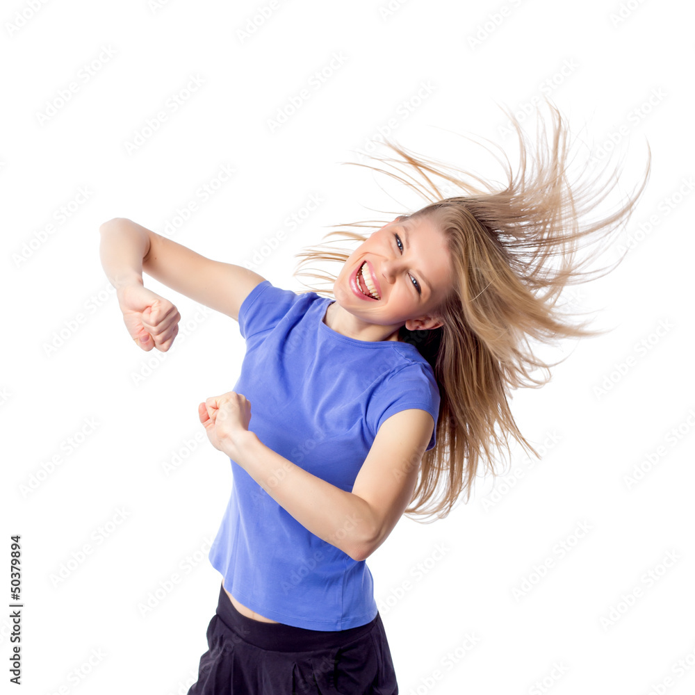 Happy smiling zumba dance instructor training in studio