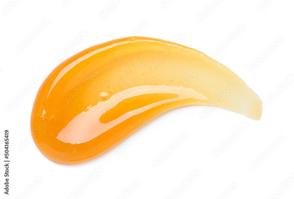 Clear orange gel smear smudge curve with bubbles isolated on white background top view