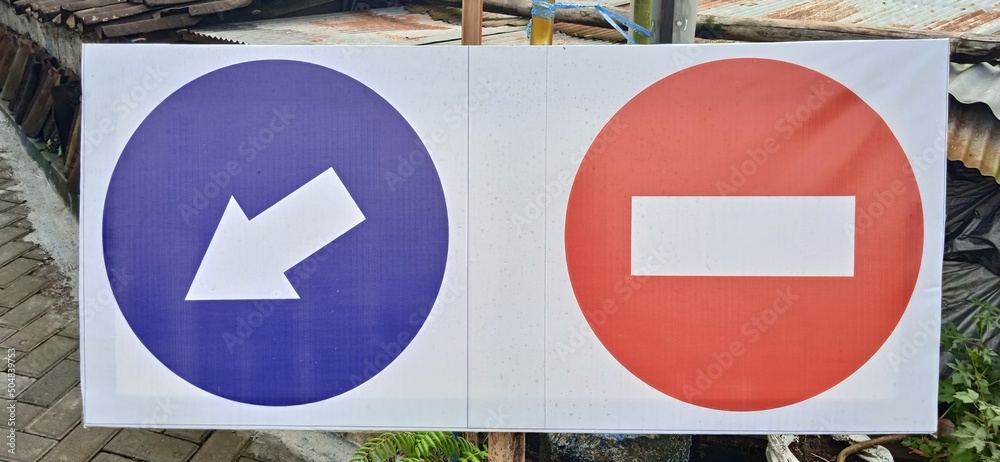 traffic sign on sideroad, traffic signs, arrow plus on board set