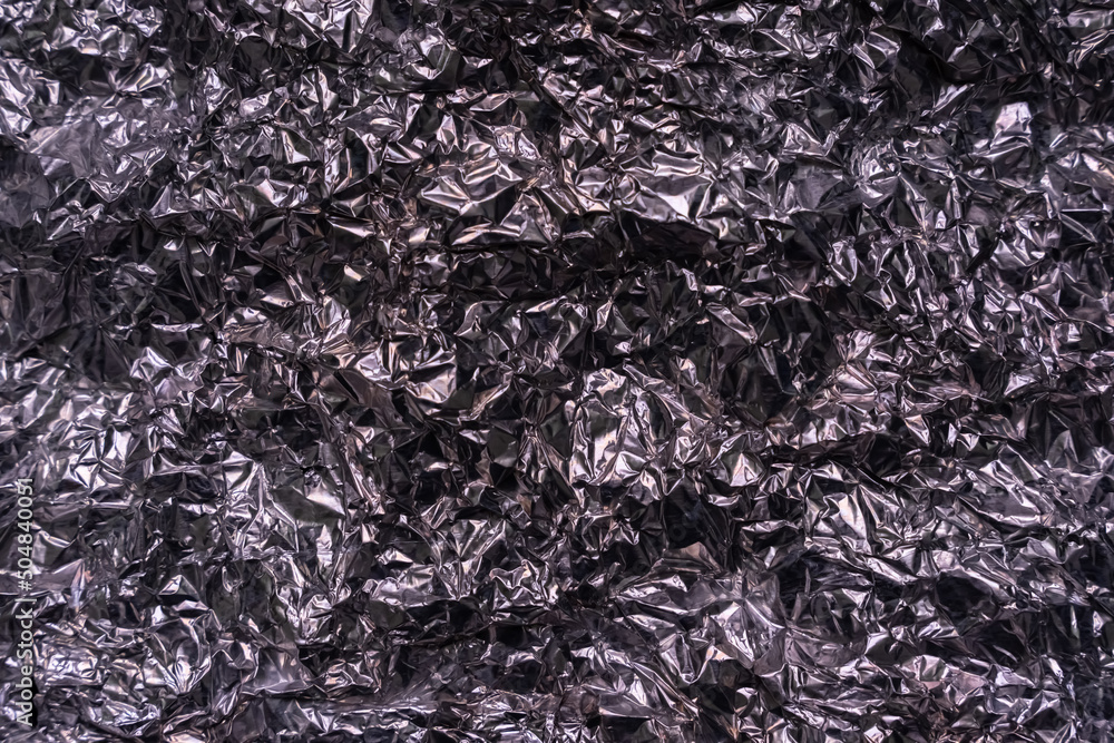 Abstract texture pattern metallic paper using as a background or wallpaper. Metal aluminum foil shiny and reflector