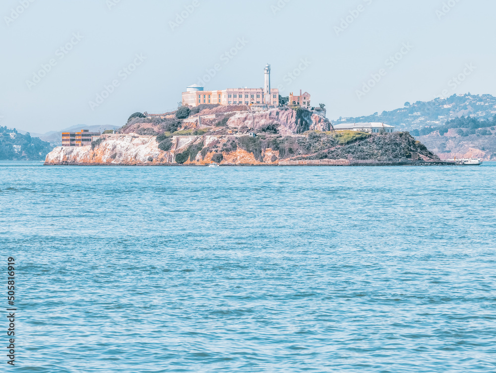 Alcatraz Island in San Francisco, USA. Photo processed in pastel colors