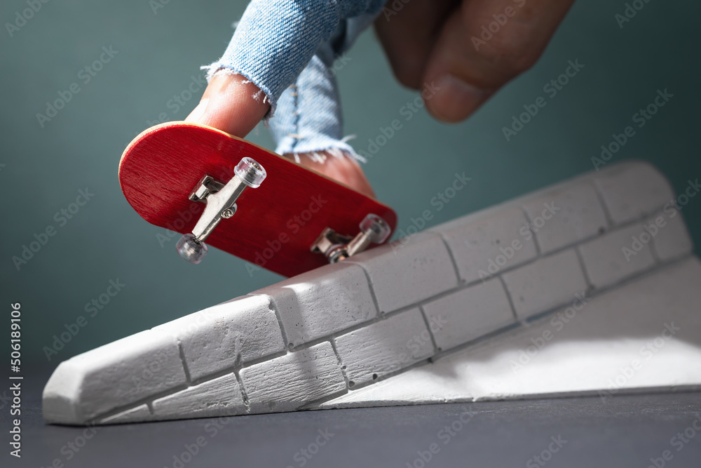 A man performs exercises with a fingerboard on a plaster ramp