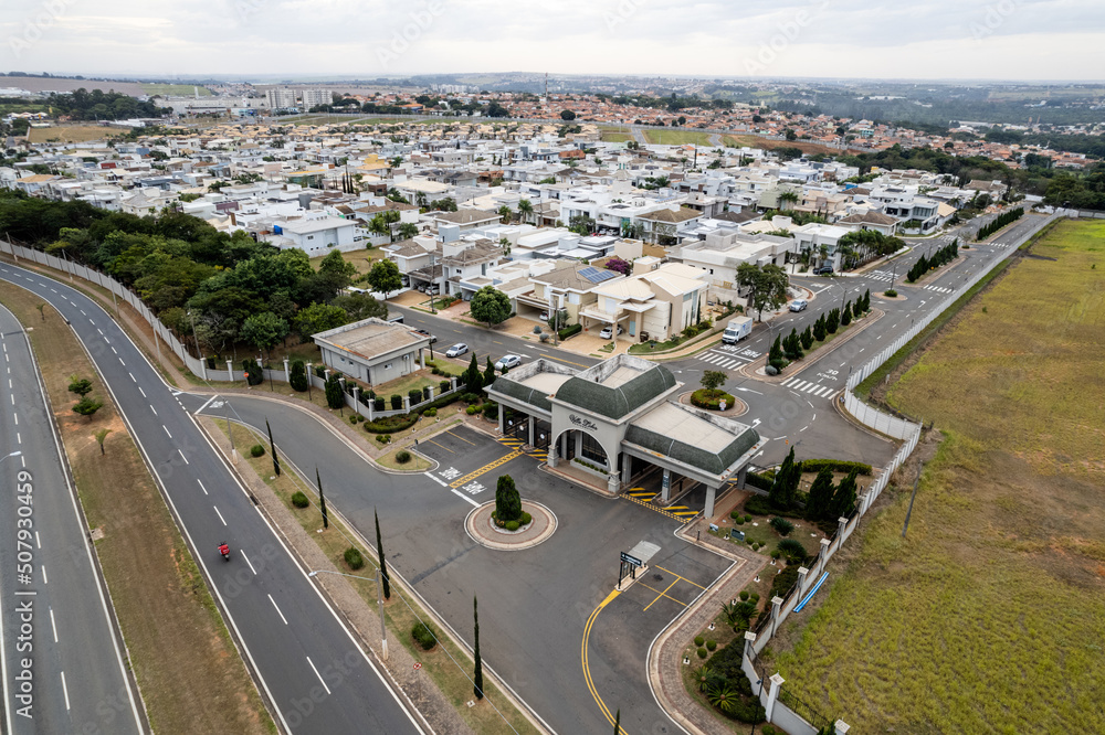 Vista aérea de Paulínia, São Paulo. Interior do Brasil. 2022.
