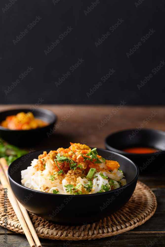 Rice noodle mixed with spicy tomatoes sauce, Tai Yai food in Northern of Thailand