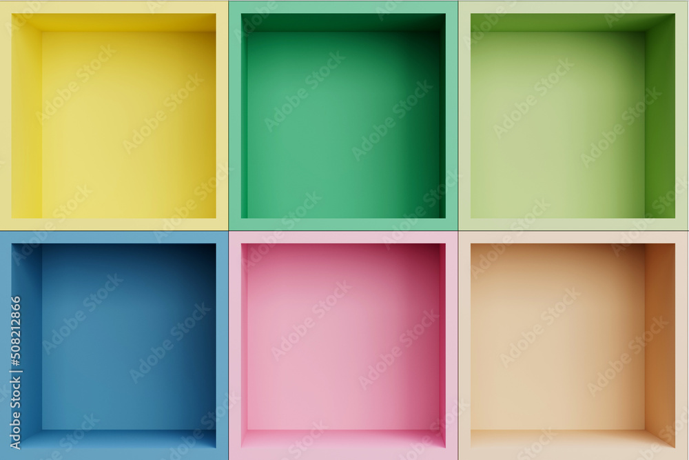 Bunte leere Regale als Mock-Up Template Hintergrund