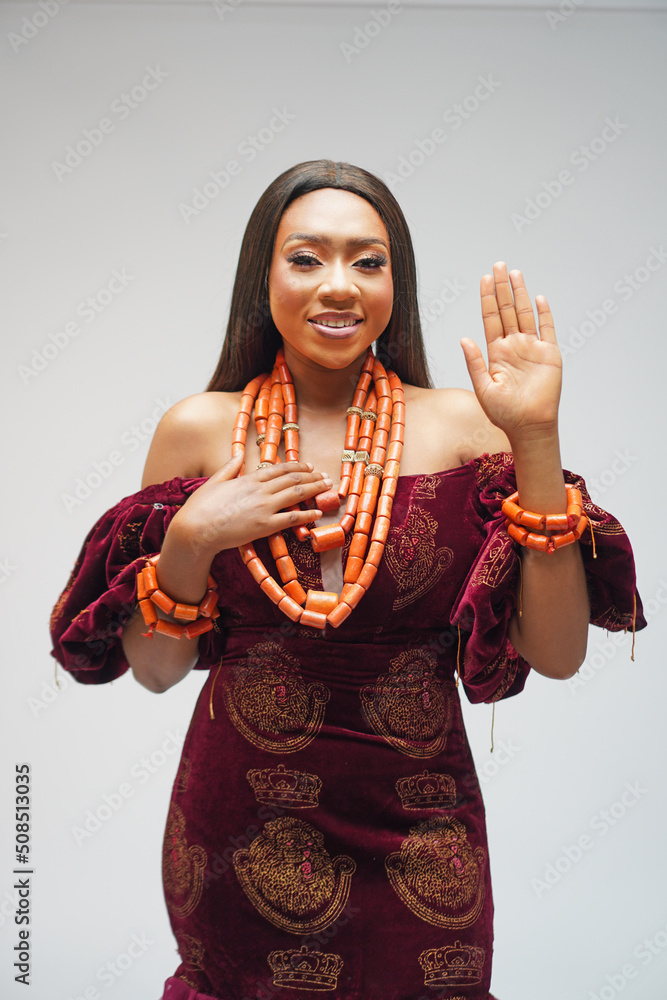 Portrait of pretty Nigeattirerian Woman dressed in tribal