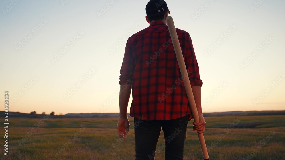 agriculture. farmer with a shovel walk in the field. agriculture business sun harvesting of a farmer man with shovel a walk to work in the field. business natural roducts soil harvest