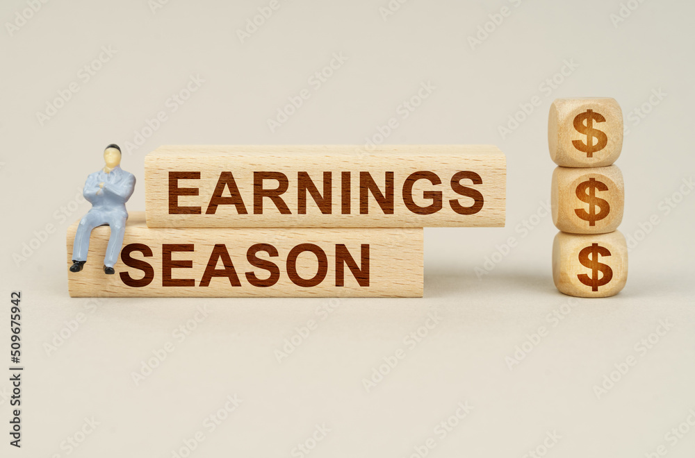 On the blocks with the inscription - Earnings Season, the figure of a businessman sits, next to the cubes