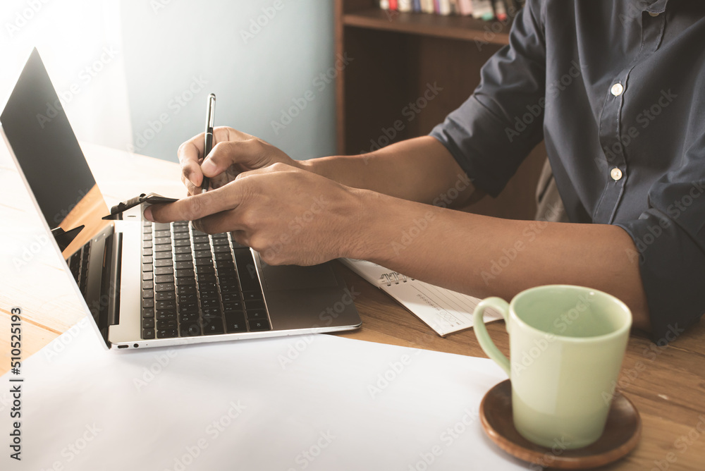 Young entrepreneur business owner work at home, small business startup receive order client and take note working with report and pack the product on purchase delivery online to sending destination.