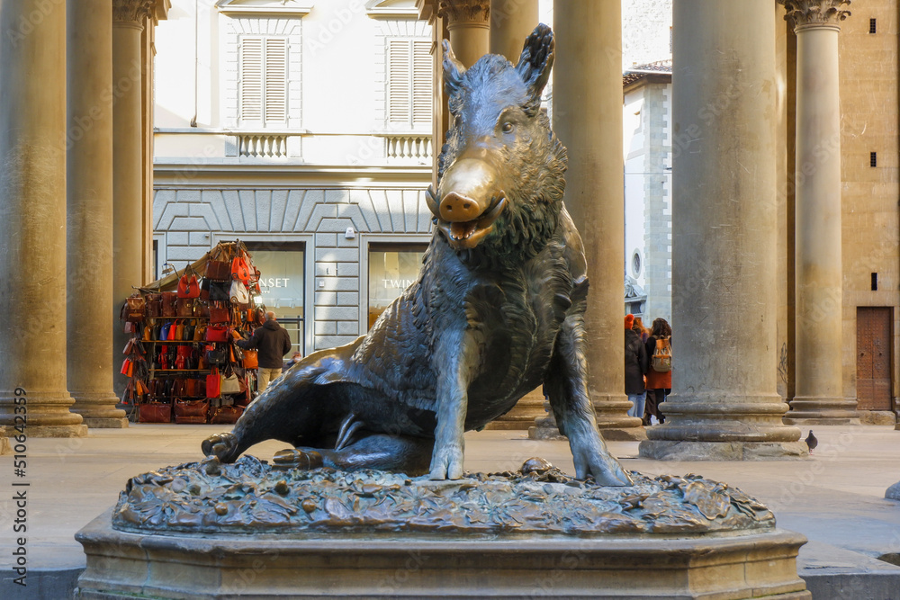 Il porcellino nella loggia del porcellino stranamente isolato e abbandonato dagli amici turisti durante il lockdown a Firenze