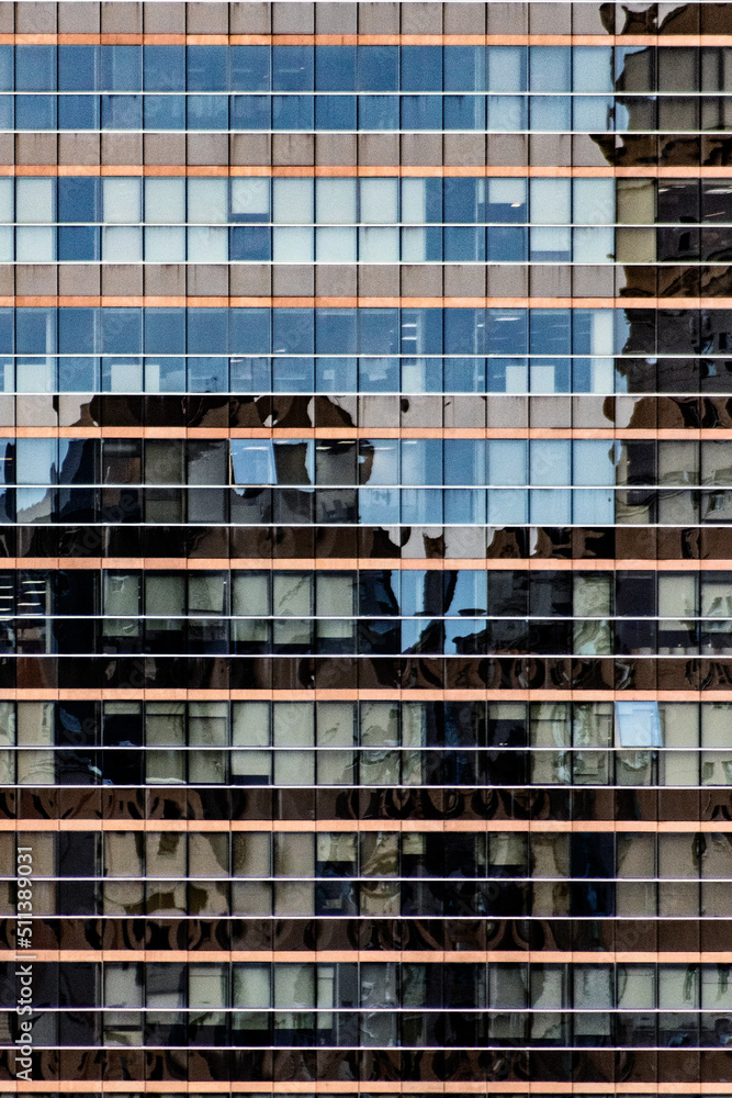 Reflexo em um prédio localizado na Avenida Norte-Sul em Campinas, São Paulo, Brasil