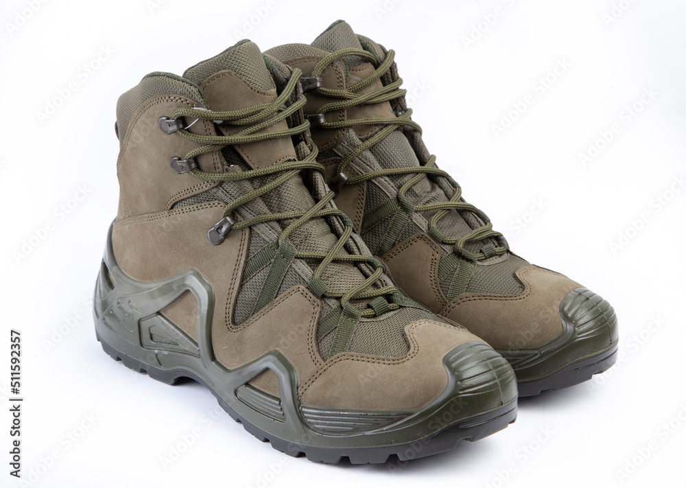 Military footwear shoes , pair of boots isolated