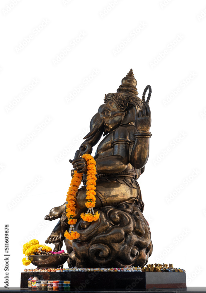 Hindu God Ganesha, Lord of Success isolated include clipping path on white background. Left side