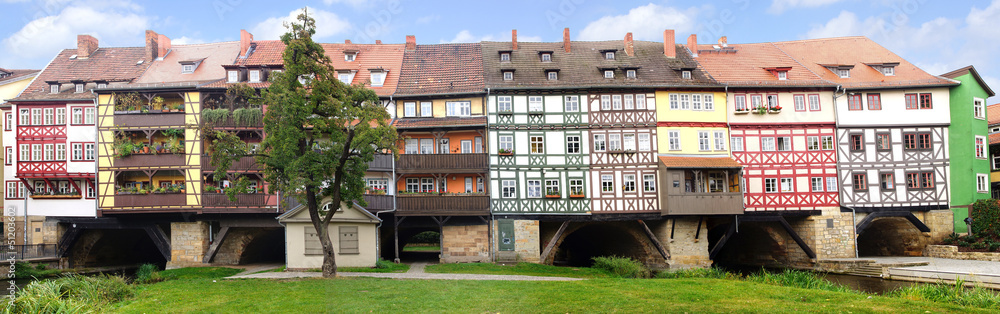 Picturesque panorama with Merchants' Bridge. Erfurt, Germany.