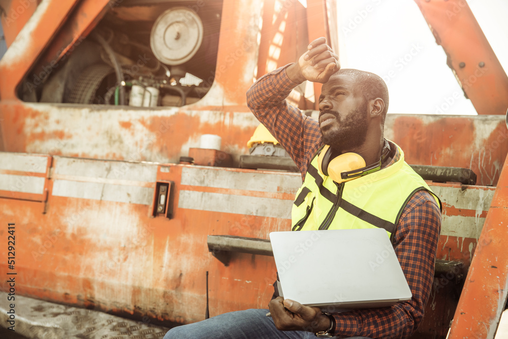 Tired stress worker sweat from hard working restless risk from health problem headache and stroke syndrome.
