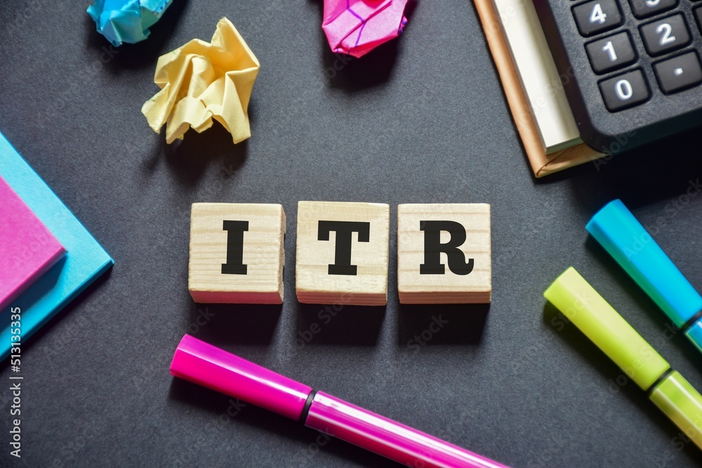 Wooden blocks with the inscription ITR (income tax return) on office desk.