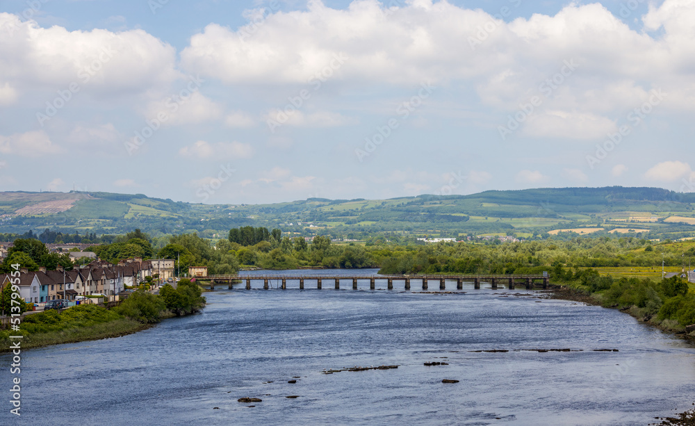 Beautiful Limerick urban cityscape over the river Shannon viewed from King John's Castle