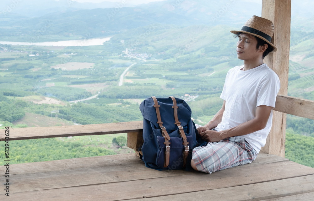 Asian man sleeping and relaxing.copy space