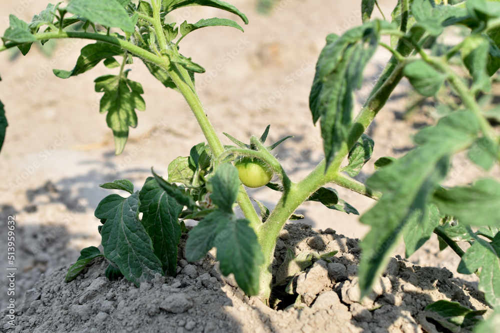 Green tomato bush with fruits.