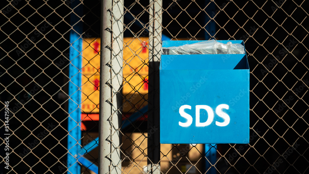 "SDS" (safety data sheet) container box which is installed in front of chemical storage warehouse at the factory. This box is used to place chemical treatment document, using for emergency incident.