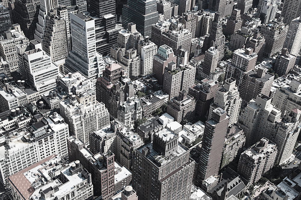 Black and white rooftops of Manhattan, New York City