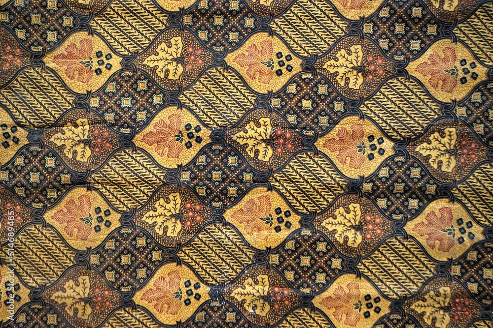 Beige-braunrote Tapete mit Kästchen- und Blumenmuster als Hintergrund