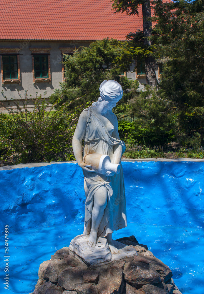 Stone statue of a woman with a jug, in a pool, National Reserve Askania-Nova, Ukraine
