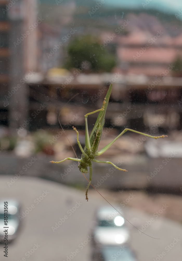 Tettigonia viridissima. Great green bush-cricket in the city. Quality image for your project