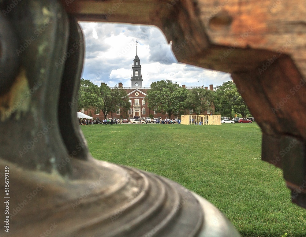Distant view of the Delaware Legislative Hall on a cloudy day in Dover, Delaware, United States