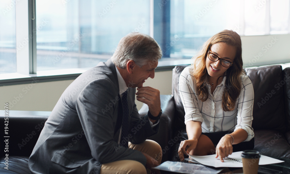 ビルの窓際に座り話す複数のかっこいいビジネスマン