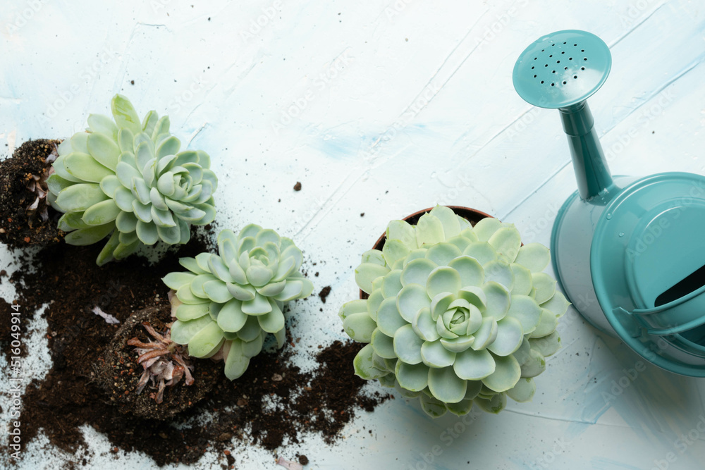 Replanting house plants into pot. Cultivation and caring for hen and chicks plants