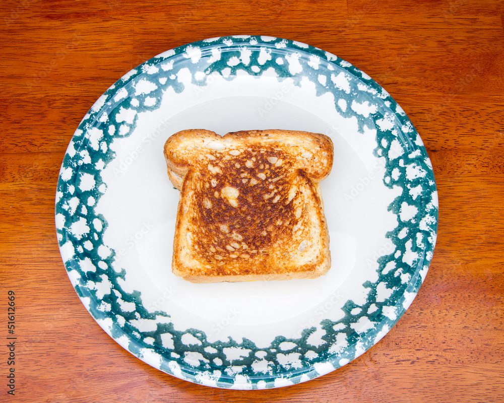 Piece of toast on a decorative plate